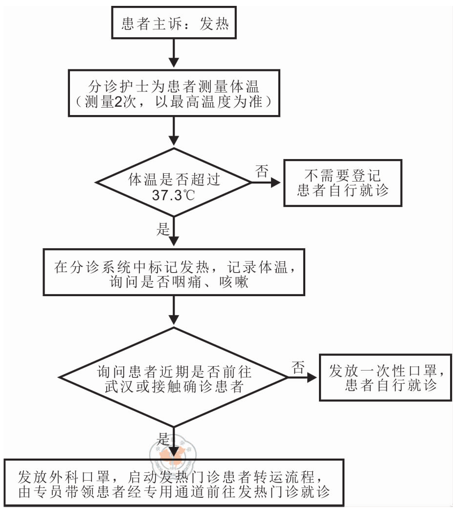 田琳,祝伟秀,李莉,等.发热门诊标准化分诊流程的建立及应用[J].中华医院感染学杂志,2016,26(24):5737-5739.